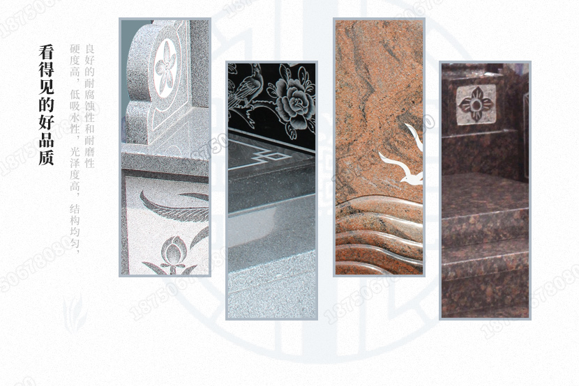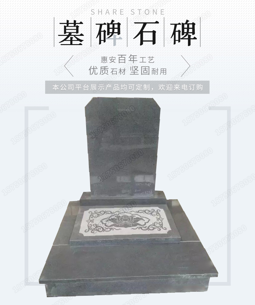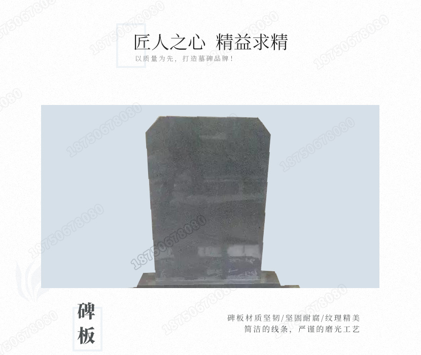 增添些许灵动,不那么单调、枯燥。精湛的雕刻技艺,使得墓碑的档次得到一个质的飞跃和提神,这是一款经典的传统中式火葬墓碑,在我国的农村地区相当受欢迎,因其大气,端庄,且价格花费也不会很高,很适合农村人的消费观念。