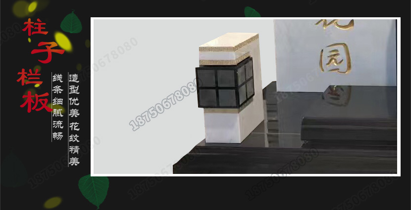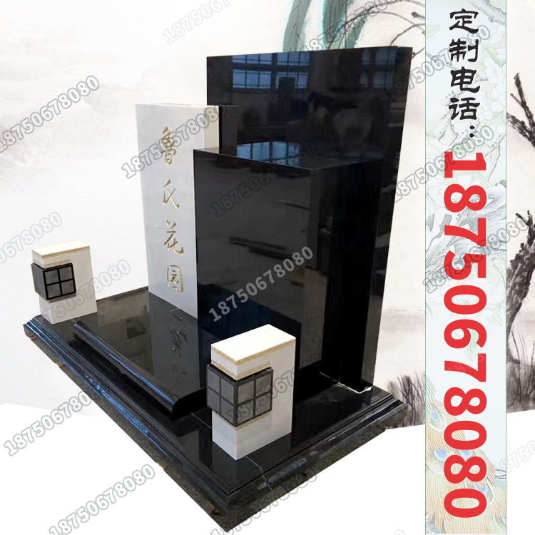 这款墓碑造型非常的有创意,很独特,选用优质的山西黑花岗岩石材,搭配汉白玉石材雕刻,凸显了整套墓碑的端庄大气之感。山西黑石材的应用显得整套墓碑更加沉稳大气,汉白玉石材的搭配,提升了档次。这套墓碑在国内的墓碑市场中,定位在中高端的位置,不管是在配色、款式、设计理念上都受到众多消费者的喜爱、各大陵园公墓的热订。