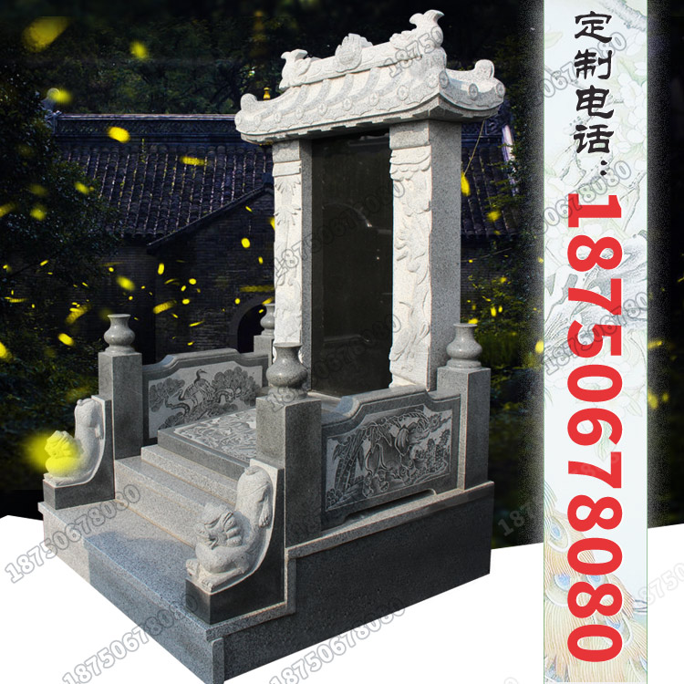 中式传统经典款芝麻白花岗岩石雕墓碑 福建厂家直销 欢迎来电定制