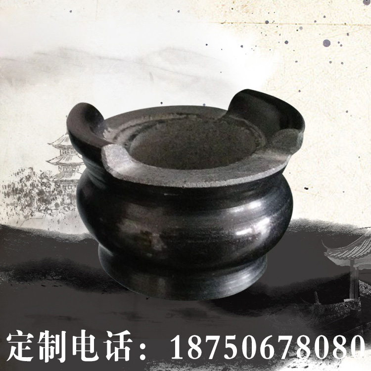 山西黑圆形香炉 各种尺寸均都有 可定制