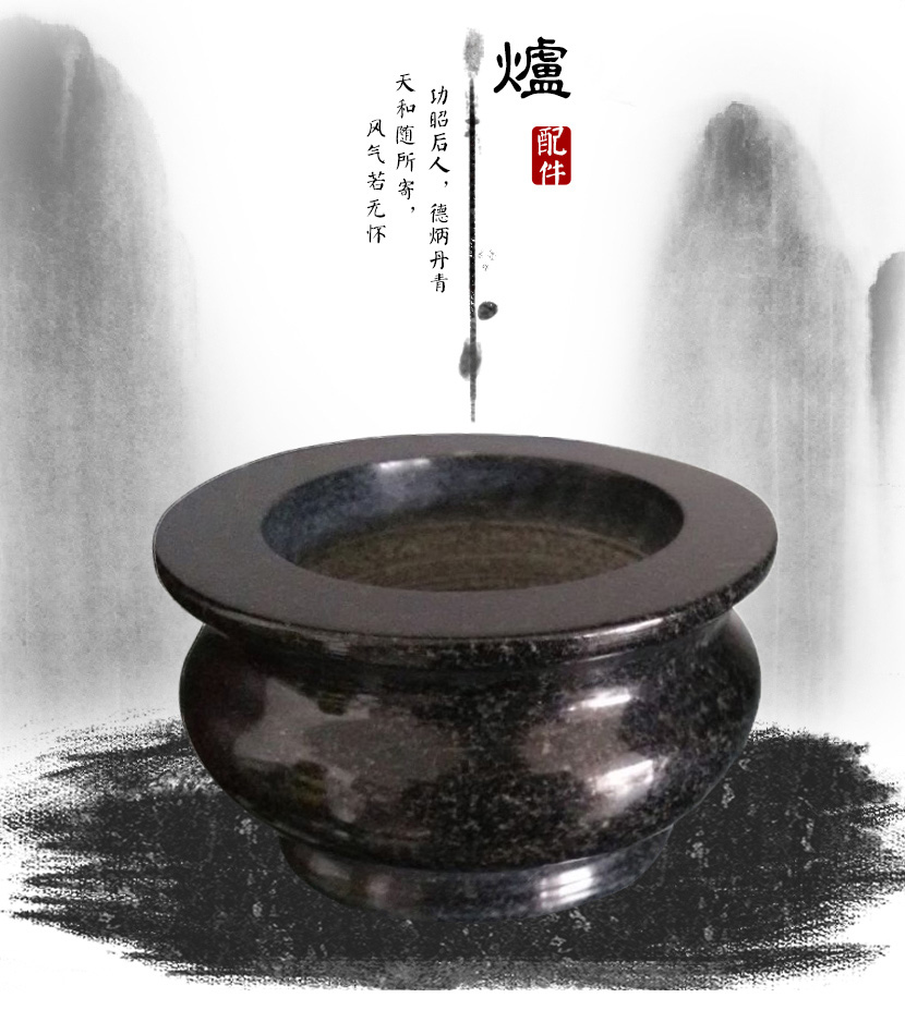 的另外一种款式,图片右侧的是上一种圆形香炉小规格的样式,但是图片的两款材质都是使用山西黑。